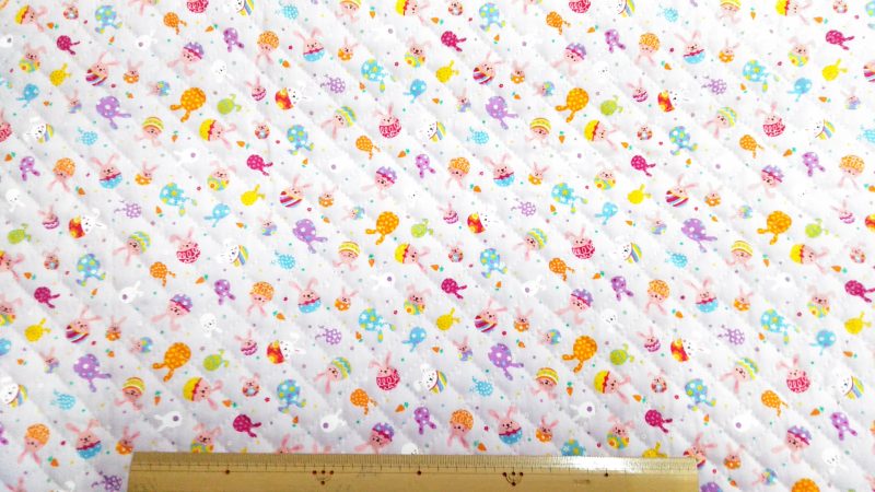 | 商品説明 | 生地には両端およそ2cmに余白にメーカー名、又、加工の際に出来る細かいミシン目の様な穴が有り、それを含めての生地の幅105cmの表記になります。 約1cmから2cmの小さめなウサギさん 回りには、ニンジンと小花が散りばめられてます |