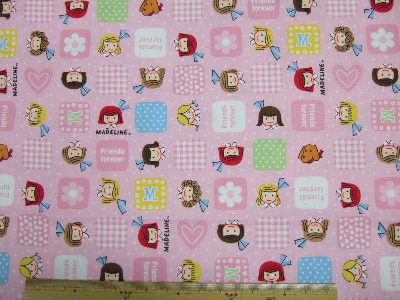 | 商品説明 | 生地には両端およそ2cmに余白にメーカー名、又、加工の際に出来る細かいミシン目の様な穴が有り、それを含めての生地の幅105cmの表記になります。マドレーヌと仲良しともだちの、にっこりフェイス柄! |