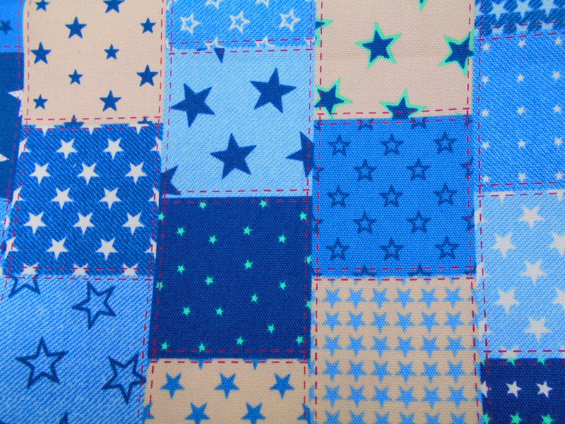 | 商品説明 | 生地には両端およそ2㎝に余白にメーカー名、又、加工の際に出来る細かいミシン目の様な穴が有り、それを含めての生地の幅110㎝の表記になります。 色々な星柄が縦5cm横5cmのパッチワーク調に並んでいます。 |
