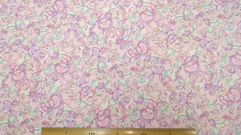| 商品説明 | 生地には両端およそ2cmに余白にメーカー名、又、加工の際に出来る細かいミシン目の様な穴が有り、それを含めての生地の幅110cmの表記になります。 うさぎとユニコーンがたくさん集まった可愛い柄です。 |