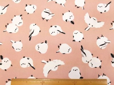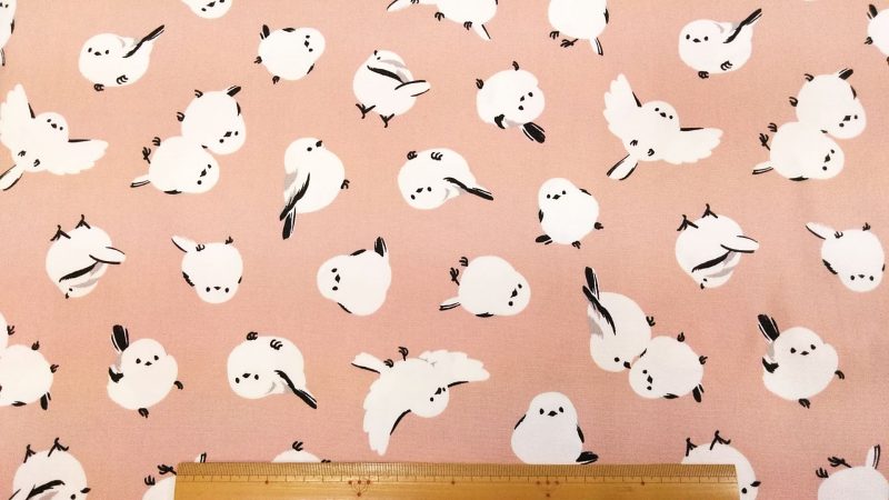 商品説明 | 生地には両端およそ2cmに余白にメーカー名、又、加工の際に出来る細かいミシン目の様な穴が有り、それを含めての生地の幅110cmの表記になります。 大人気のシマエナガ柄 約3.5cmから4cm位の大きめのシマエナガです。 |
