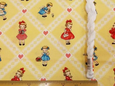 | 商品説明 | 生地には両端およそ2㎝に余白にメーカー名、又、加工の際に出来る細かいミシン目の様な穴が有り、それを含めての生地の幅110cmの表記になります。 大きめな斜め格子の中にマーガレットがポーズしています♪ 縁取りはハートで可愛いです。 マーガレットの大きさ約8㎝です。 |